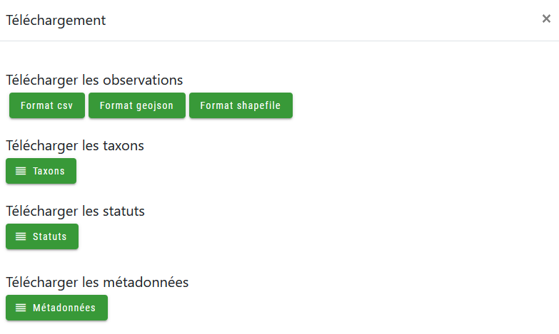 Une fois la sélection faite, vous pouvez télécharger différentes données sous différents formats :