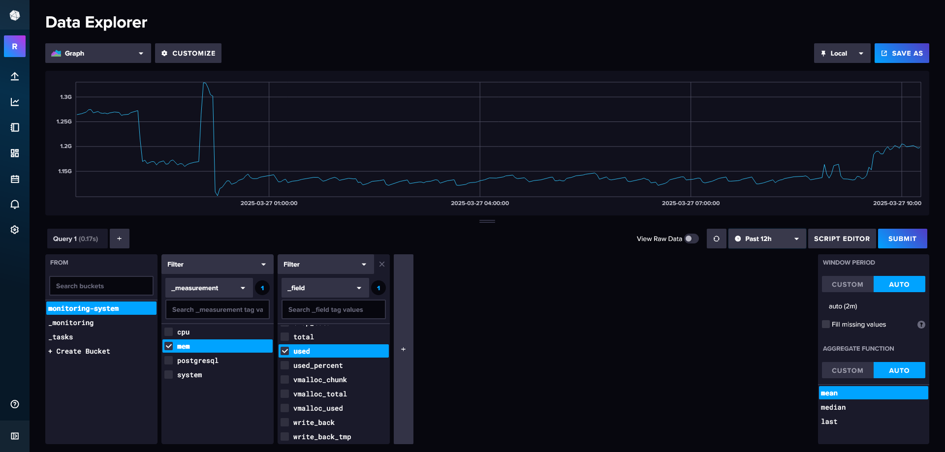 |> filter(fn: (r) => r._measurement == "mem" and r._field == "used")