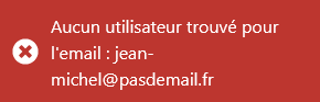 Si l’adresse mail tapée renvoit un message comme ci dessous indiquant qu’aucun utilisateur n’est trouvé pour cet adresse, c’est que vous n’avez pas de compte. Créez-en un !